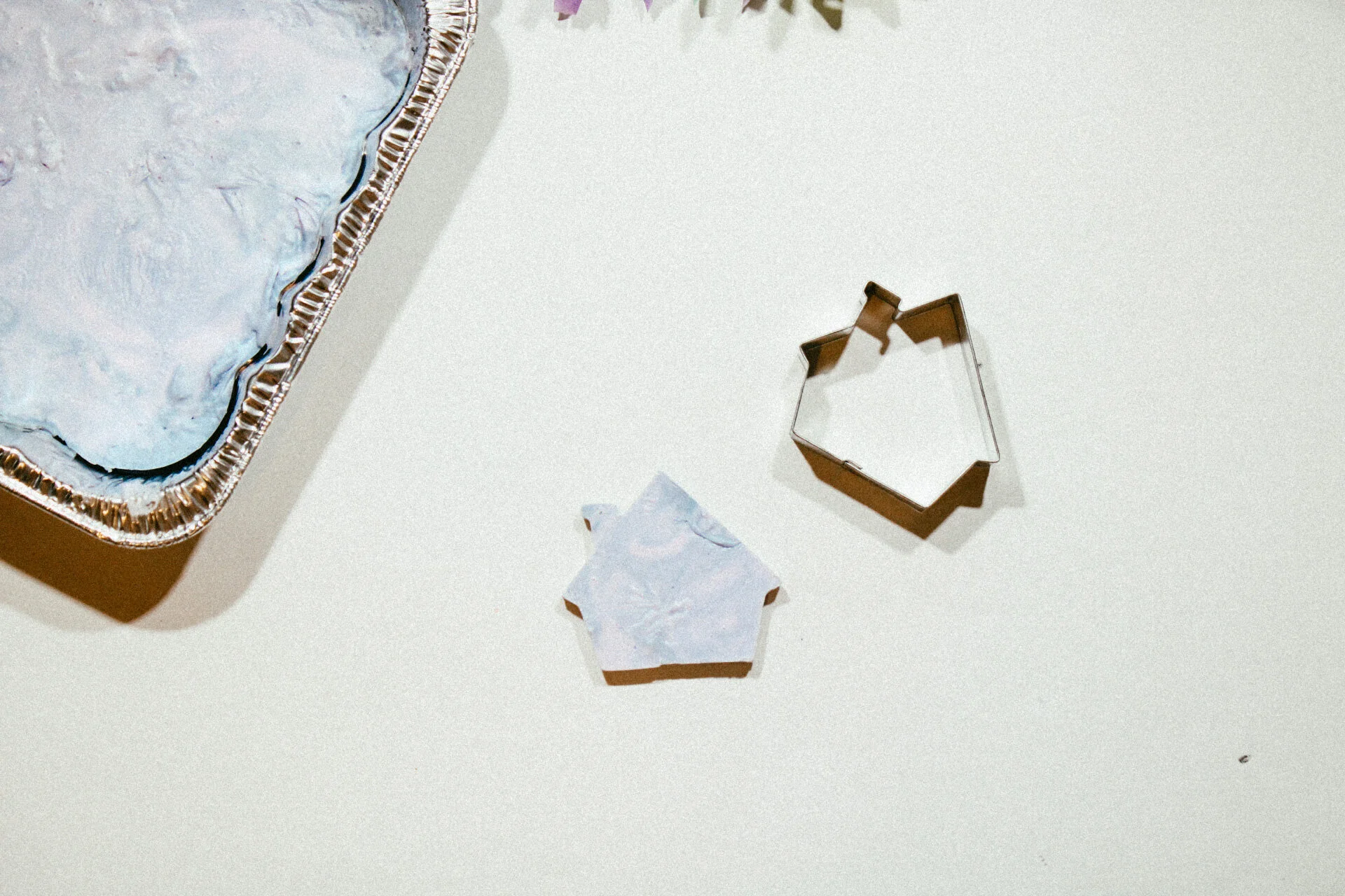 Once the soap has cooled use a hammer to gently tap the cookie cutters into the soap. Once the cutter has gone all the way through the soap, carefully lift it out.