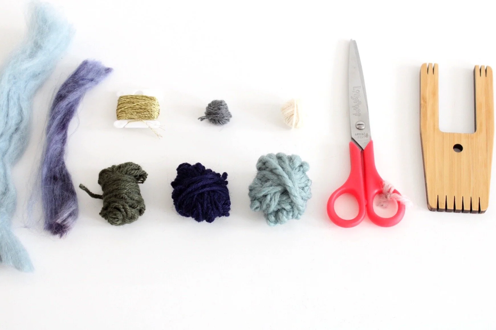 I love making these mini weavings and having this LOOME tool. To be completely honest, I have a whole kit for my bag for when I am leaving the house. Inside this kit is; a LOOME tool, scrap yarn, scissors, weaving needle. I literally always have the ability to weave with me. I normally pull it out during a meeting, when I am waiting for an appointment, when I am on the train. Everywhere is the perfect place to weave and I take that very seriously. Weaving is a HUGE coping skill for me and these little weavings that I make are exactly like if I was to carry around a sketch book and make a drawing. They are super mindless, but also mindful for me. The smaller the weaving, the less of a plan that I have which also makes it totally more spontaneous and improvisational. What is fun is sometimes I get to make the weaving into jewelry, or I give the weaving to the person I am on my way to see!